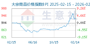 2月14日大宗商品价格指数BPI为928点,与昨日持平,较周期内最高点1343点...[详细]