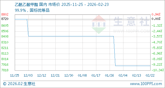 2月23日,生意社乙酰乙酸甲酯基准价为7900.00元/吨,与本月初持平。