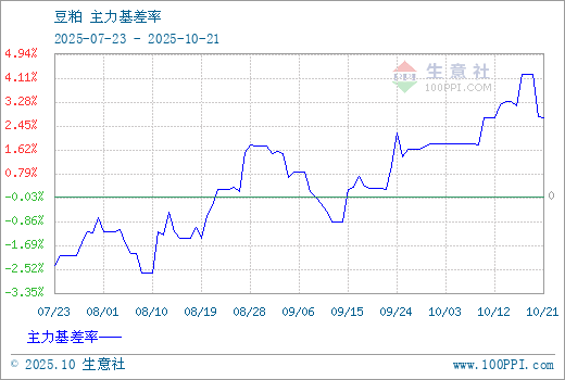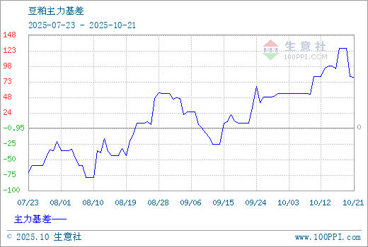 注: 1、从2025-07-23 至 2025-10-21期间,豆粕主力基差最大值为128.00,最小值为-80.00。
