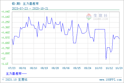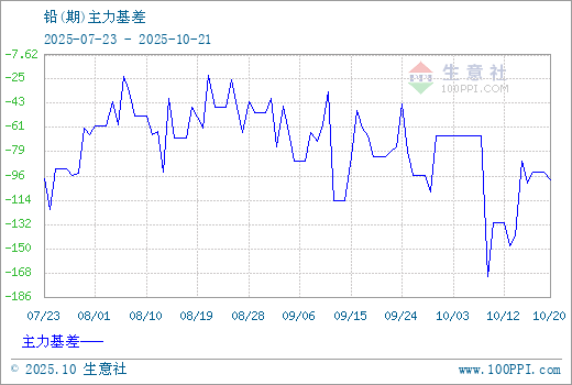 注: 1、从2025-07-23 至 2025-10-21期间,铅主力基差最大值为-22.50,最小值为-171.25。