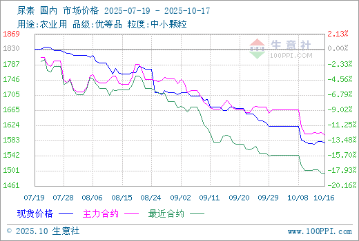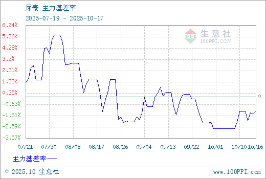 注: 1、从2025-07-19 至 2025-10-17期间,尿素主力基差最大值为98.50,最小值为-44.75。