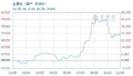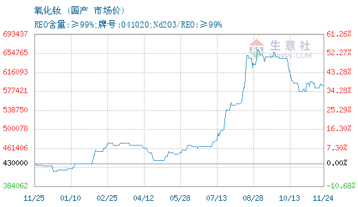 更多>>生意社:11月24日国内镨钕系部分价格上...