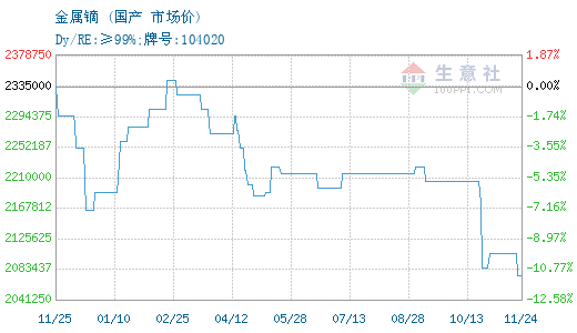 - 11-24生意社:11月24日国内镝铽系价格走势暂稳