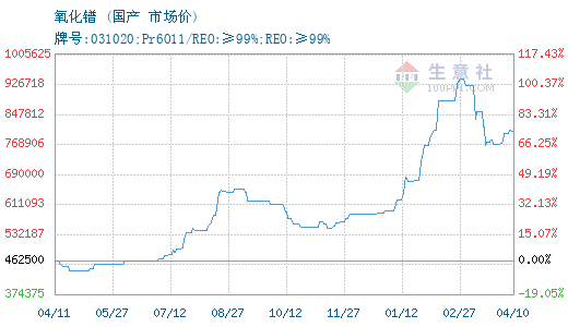 - 04-104月10日生意社氧化镨基准价为802500.00元/吨