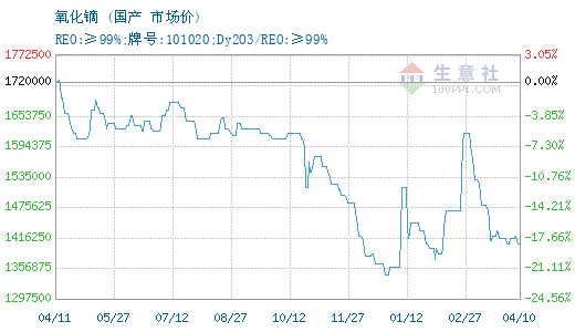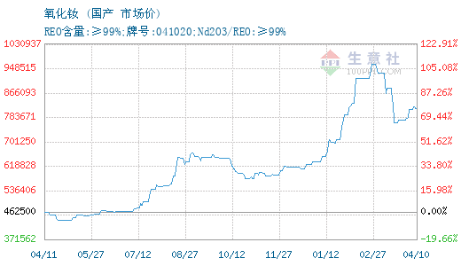 更多>>生意社:4月10日国内镨钕系稀土价格暂...