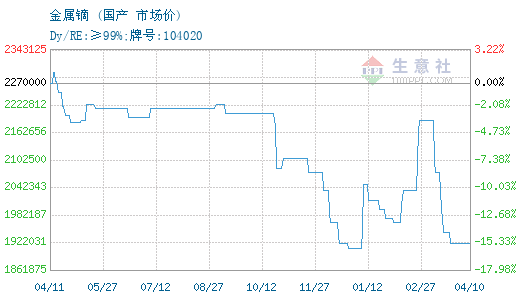 - 04-10生意社:4月10日国内镝铽系价格走势暂稳