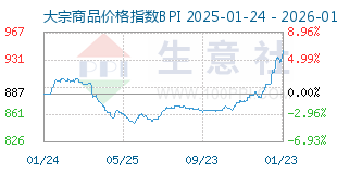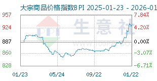 1月22日大宗商品价格指数BPI为934点,较昨日上升了4点,较周期内最高点1343点...[详细]