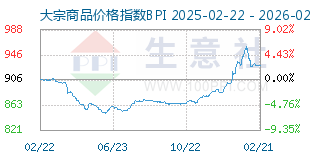 2月22日大宗商品价格指数BPI为928点,与昨日持平,较周期内最高点1343点...[详细]