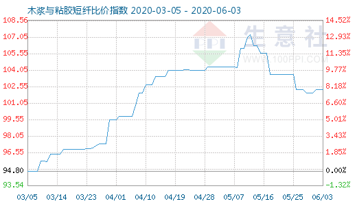 6月3日木浆与粘胶短纤比价指数为102.30