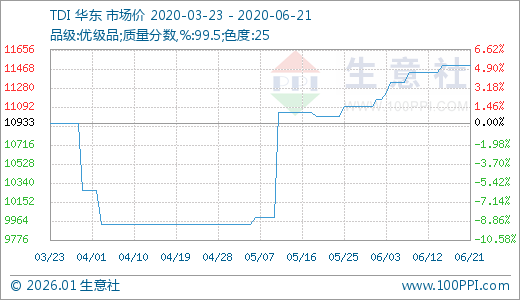 TDI 06月21日最新价格11500.00元/吨,最近60天上涨15.77%。