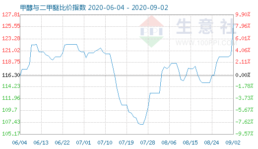 9月2日甲醇与二甲醚比价指数为125.93