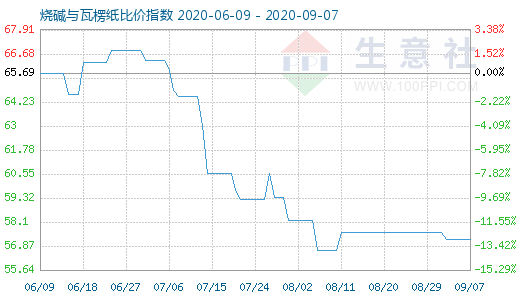 9月7日烧碱与瓦楞纸比价指数为57.23
