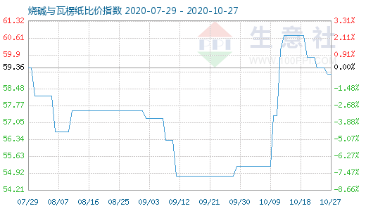 10月27日烧碱与瓦楞纸比价指数为59.08