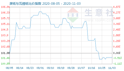 11月3日废纸与瓦楞纸比价指数为101.56