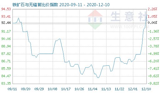 12月10日铁矿石与无缝管比价指数为93.60