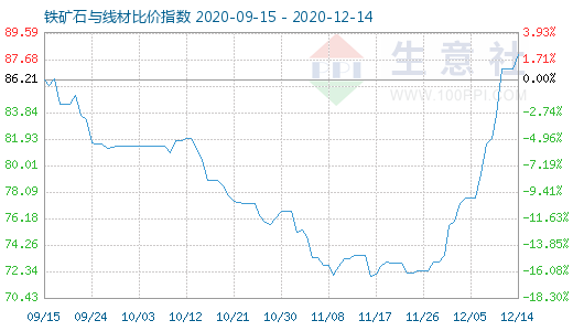 12月14日铁矿石与线材比价指数为88.00
