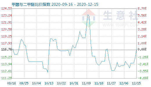 12月15日甲醇与二甲醚比价指数为116.95