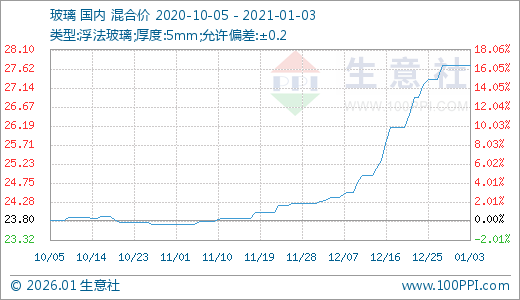 01月03日玻璃27.70元/平方米 20天上涨10.27%