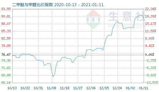 1月11日二甲醚与甲醛比价指数为90.23