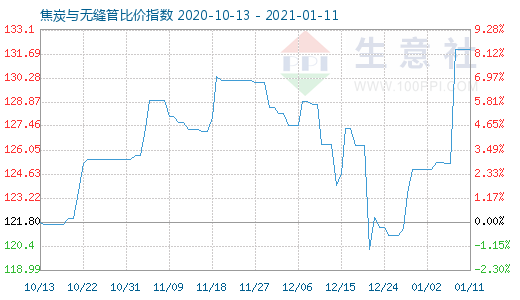 1月11日焦炭与无缝管比价指数为131.93