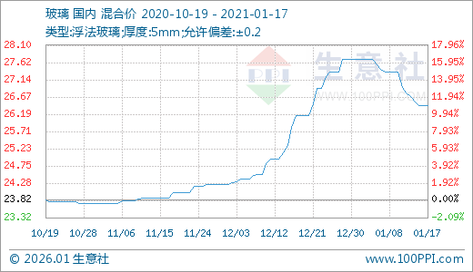 01月17日玻璃26.43元/平方米 60天上涨10.03%
