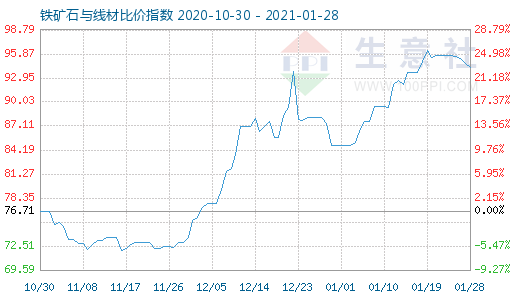 1月28日铁矿石与线材比价指数为94.18