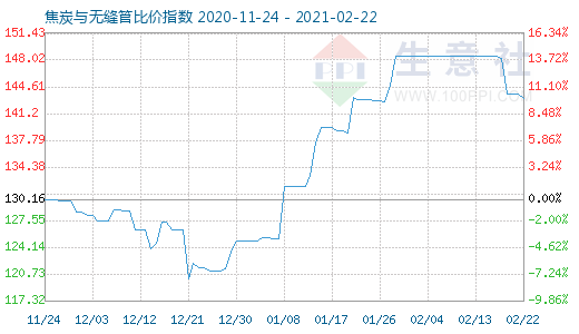 2月22日焦炭与无缝管比价指数为143.05