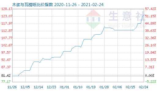 2月24日木浆与瓦楞纸比价指数为123.92