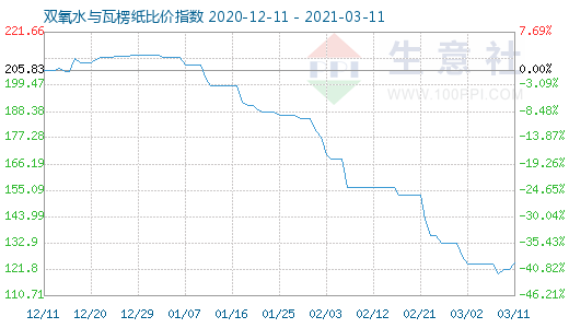 3月11日双氧水与瓦楞纸比价指数为124.18