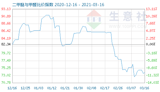 3月16日二甲醚与甲醛比价指数为73.88