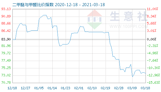 3月18日二甲醚与甲醛比价指数为73.65
