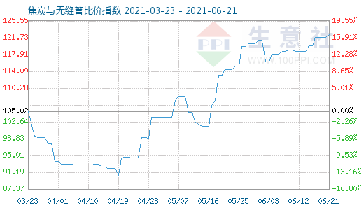6月21日焦炭与无缝管比价指数为122.37