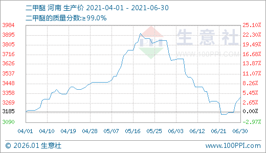 06月30日二甲醚3325.00元/吨 5天上涨4.56%