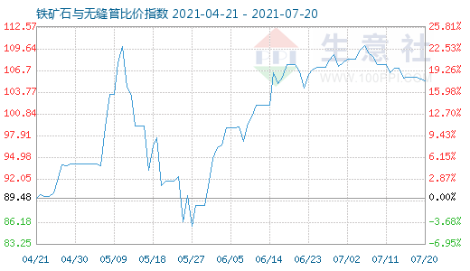 据生意社数据,当天铁矿石参考价为1490.78。当天下游商品无缝管参考价为6077.50,自2021/7/6起,15天陆续上涨了2.014%。