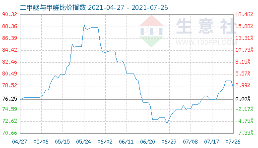 7月26日二甲醚与甲醛比价指数为78.02