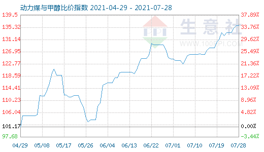 7月28日动力煤与甲醇比价指数为136.02