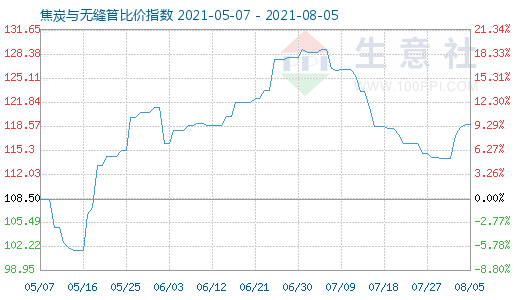 8月5日焦炭与无缝管比价指数为118.80