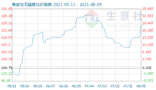 8月9日焦炭与无缝管比价指数为124.56