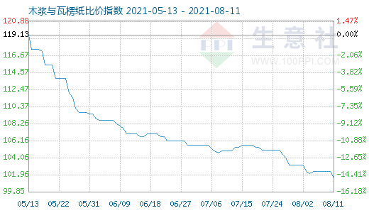 据生意社数据,当天木浆参考价为4757.50,自2021/8/4起,8天陆续上涨了0.422%。当天下游商品瓦楞纸参考价为3665.00,自2021/5/10起,94天陆续上涨了7.794%。
