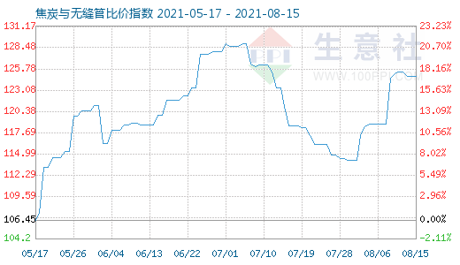 据生意社数据,当天焦炭参考价为2718.00,自2021/8/1起,15天陆续上涨了8.894%。当天下游商品无缝管参考价为6212.50。