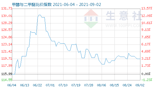 9月2日甲醇与二甲醚比价指数为119.64