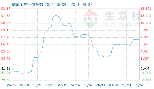 加氢苯产业链指数自2021/8/30起,9天陆续上涨了1.615%。