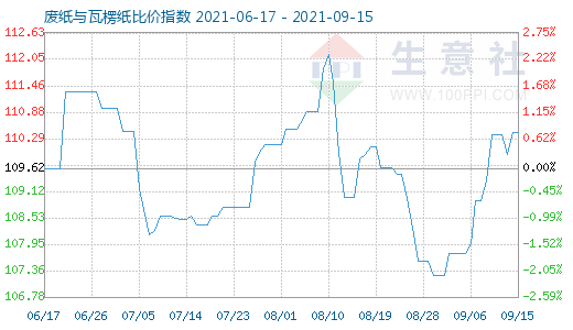 9月15日废纸与瓦楞纸比价指数为110.42