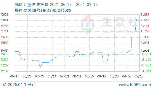 09月15日线材5836.00元/吨 10天上涨7.16%