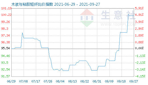 9月27日木浆与粘胶短纤比价指数为100.18