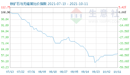 10月11日铁矿石与无缝管比价指数为59.25