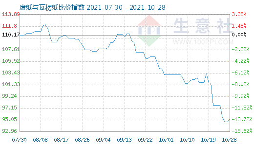 10月28日废纸与瓦楞纸比价指数为95.20