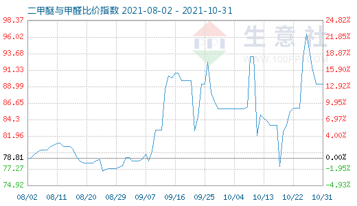 10月31日二甲醚与甲醛比价指数为89.31