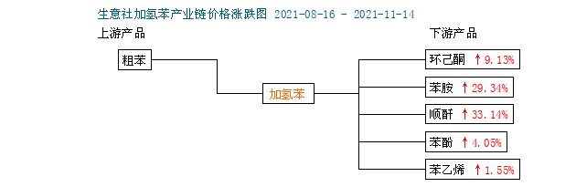 11月14日加氢苯产业链指数为91.62,与昨日持平,较周期内最高点102.02点(2013-12-24)下降了10.19%,较2020年04月06日最低点33.51点上涨了173.41%。(注:周期指2013-12-01至今)