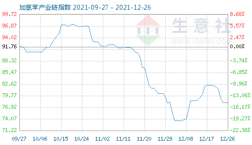 12月26日加氢苯产业链指数为78.10,与昨日持平,较周期内最高点102.02点(2013-12-24)下降了23.45%,较2020年04月06日最低点33.51点上涨了133.06%。(注:周期指2013-12-01至今)
